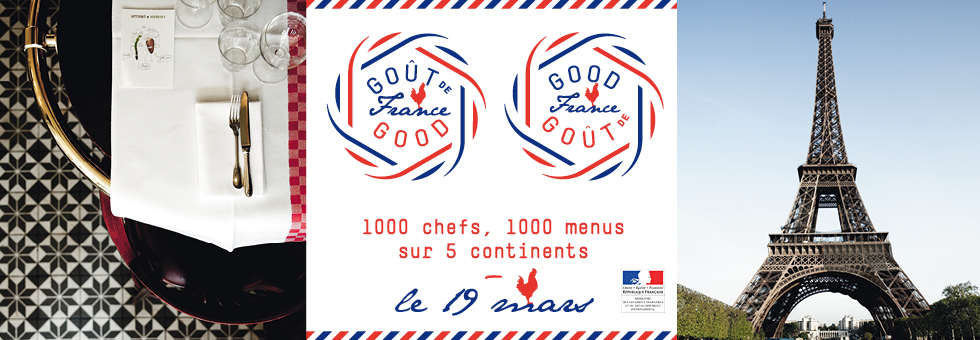 Pour la deuxième année consécutive, Goût de France / Good France rassemblera le jour du printemps, le 21 mars 2016, plus de 1700 chefs sur 5 continents pour célébrer la gastronomie française. Dans chaque restaurant participant, sous la forme d’un dîner, l’évènement rendra hommage à l’excellence de la cuisine française, à sa capacité d’innovation et aux valeurs qu’elle véhicule : partage, plaisir, respect du « bien-manger », de ses contemporains et de la planète.